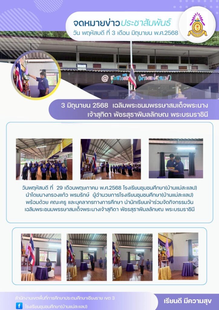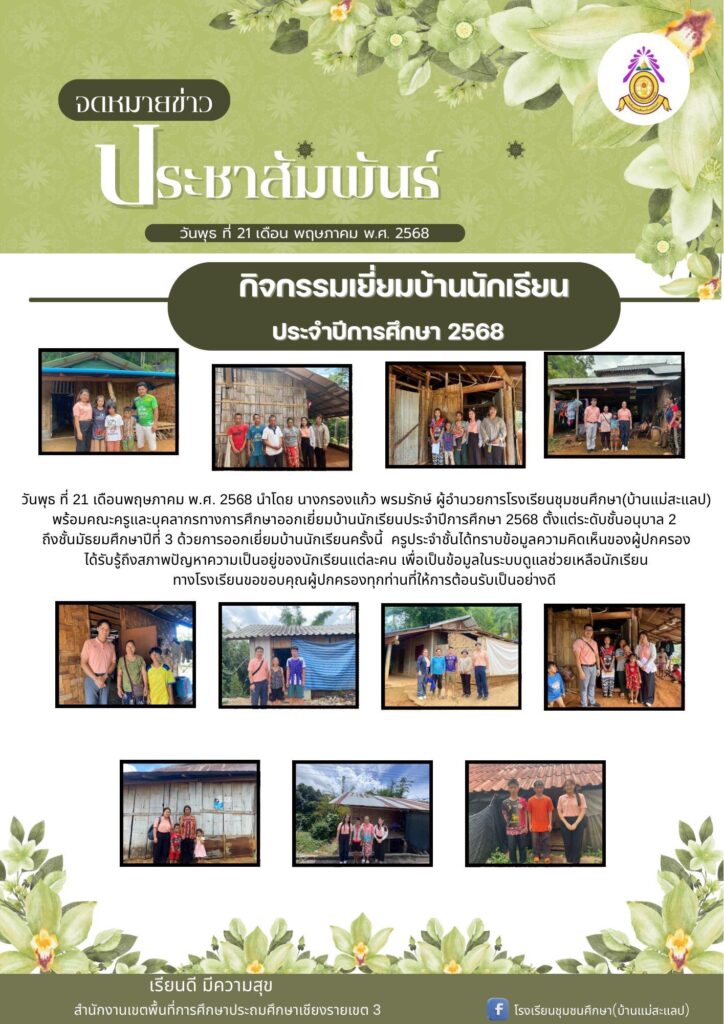วันที่ 9 เดือนกรกฎาคม พ.ศ. 2568 นำโดย นางกรองแก้ว พรมรักษ์ ผู้อำนวยการโรงเรียน พร้อมคณะครูและนักเรียนได้จัดกิจกรรมถวายเทียนพรรษา เนื่องในเทศกาลวันเข้าพรรษาเพื่อเป็นการสืบสานวัฒนธรรมและประเพณีอันดีงาม ผ่านการลงมือปฏิบัติ และยังเป็นการส่งเสริมให้นักเรียนได้เรียนรู้ปฏิบัติตามหลักธรรมทางพระพุทธศาสนาส่งเสริมคุณธรรม จริยธรรมและมีจิตใจใฝ่ดี